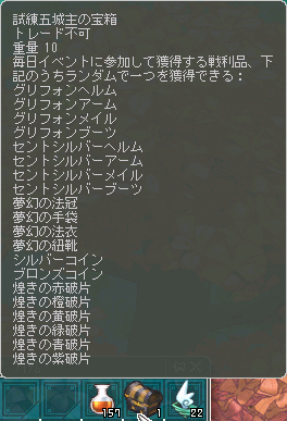 名前からして装備は重装・軽装・魔装の110レア各種のようですね。